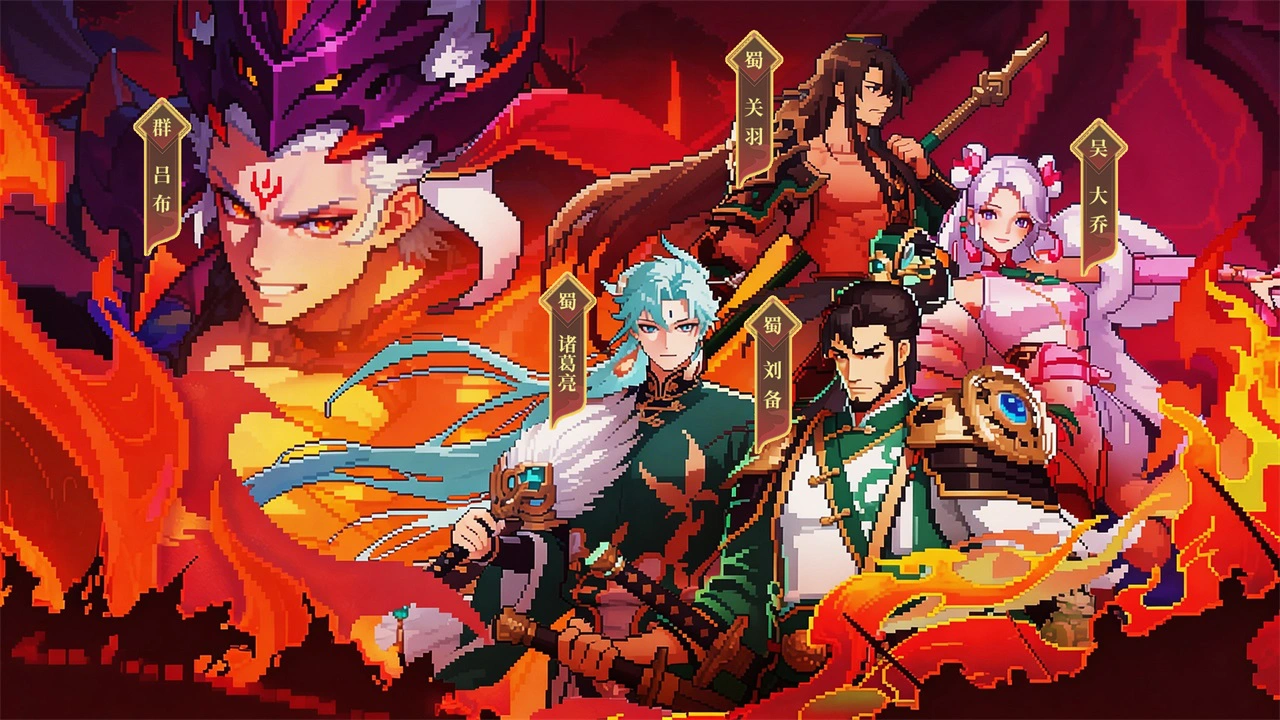 这是一个像素风格的架空三国乱世:玩家将以一方势力主公的身份,招募诸如关羽、诸葛亮等三国名将组成6人战队,在战役闯关、竞技场对抗、公会攻城战中争夺天下。既有经典三国剧情还原,也融入了原创阵营冲突与奇遇事件,结合像素怀旧画风与策略搭配玩法,打造 “轻策略 + 强收集 + 高社交” 的沉浸体验!