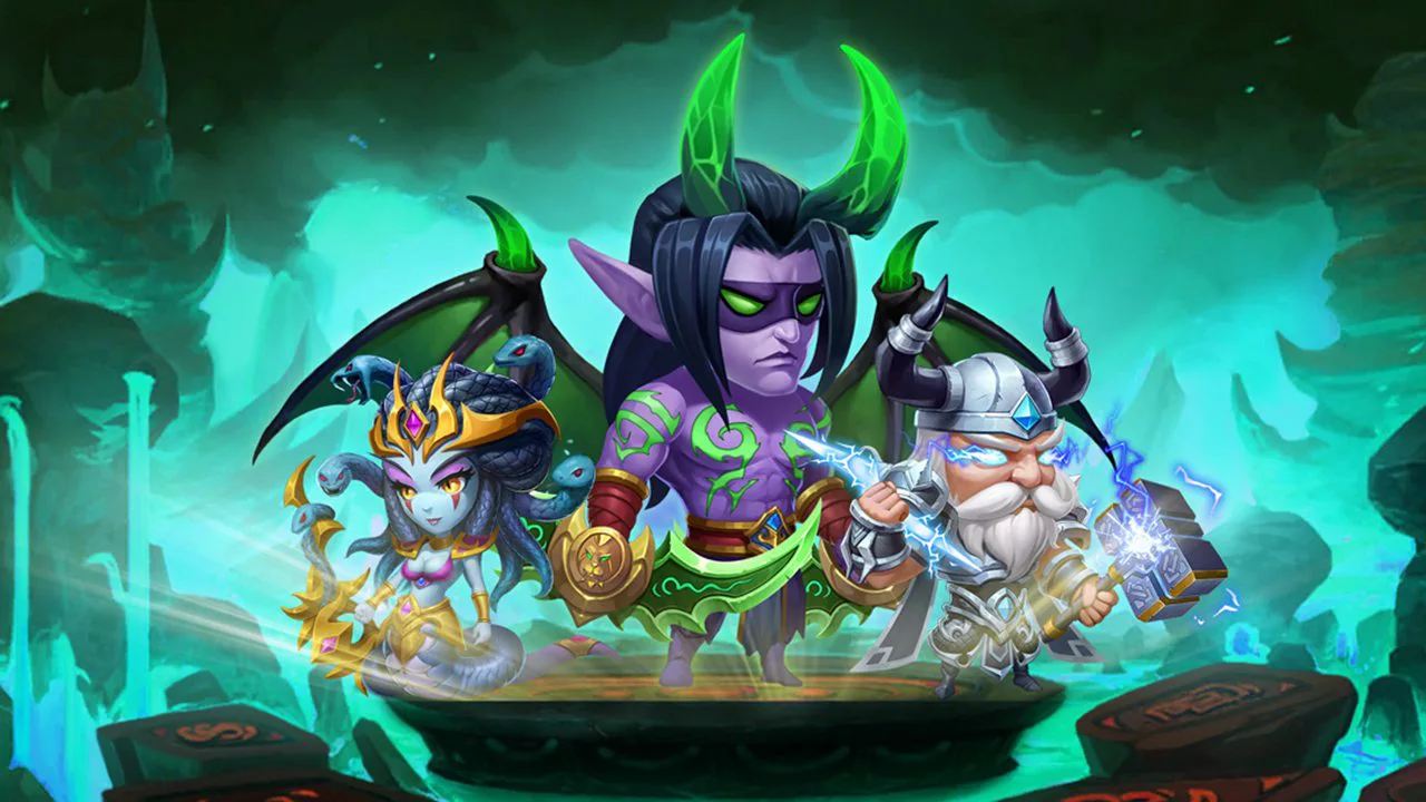 原汁原味的游戏剧情,超高还原艾泽拉斯大陆,场景、地图均取材于战役或者篇章的故事,让玩家在体验游戏的同时,追忆当年征战杀伐的快感!休闲养肝,轻松放置挂机获得海量资源,在游戏中你将能收集到多种经典英雄卡牌和数不清的世界探险,快率领你的小队加入全新征程,开启属于你的传说吧!