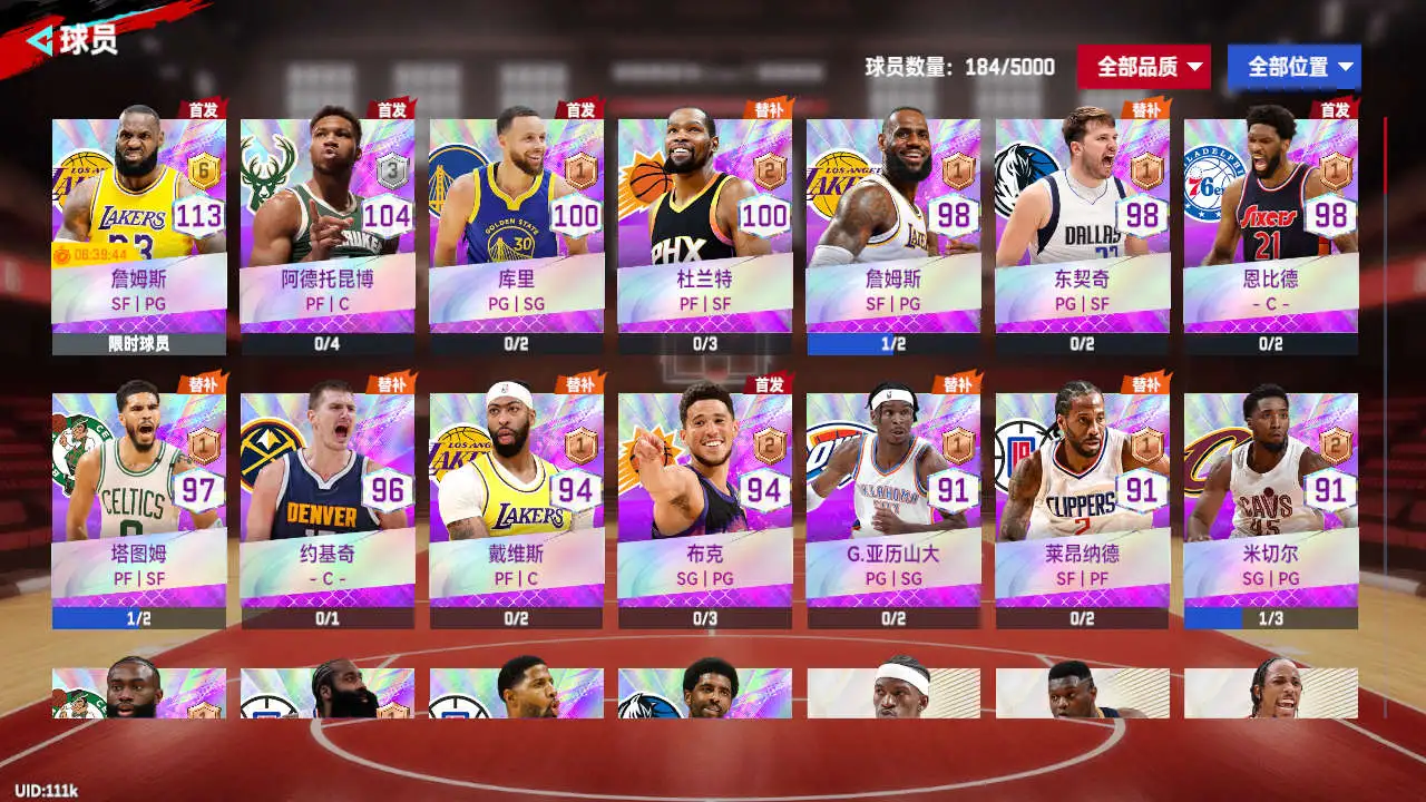 不止巨星,现役所有球员(核心轮换、潜力巨星、新秀、板凳匪徒、冷门球员)应有尽有,等你慧眼识珠!