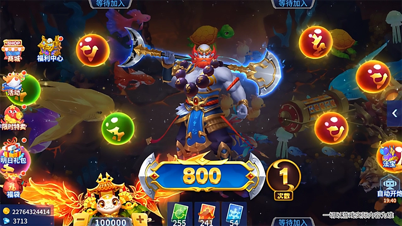 街机捕鱼与神话角色跨次元碰撞!佛光加身的唐僧、法力无边的孙悟空与身背九齿钉耙的猪八戒、金角银角等经典西游记角色齐聚渔场。各路神仙降临渔场,炫酷画面,给玩家营造沉浸式体验。