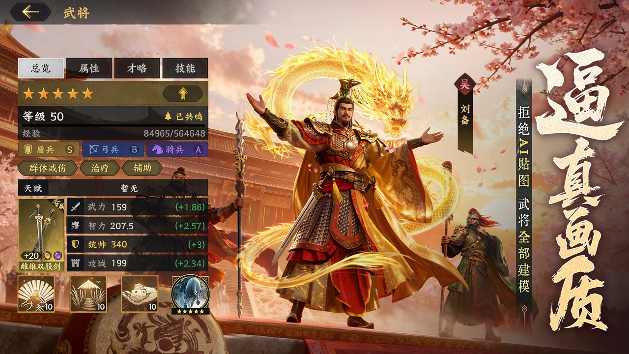 ——更进一步降肝减负:游戏也有很多降肝的措施,比如不用走格子铺路、可自动集结攻城、升级一个武将其他多个武将可共享其等级等等。降肝方面SLG前辈们都在做,谈不上创新,但我们也力图做的更极致,让玩家在免除班味的同时,又不会无聊无事可做。