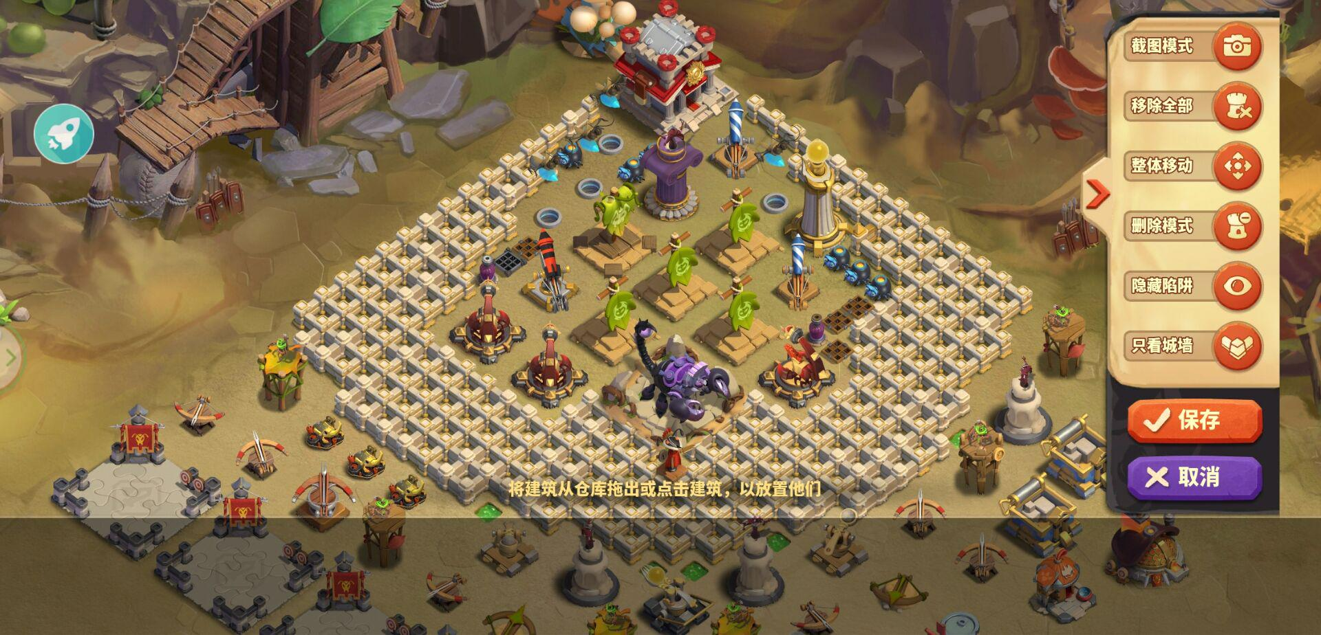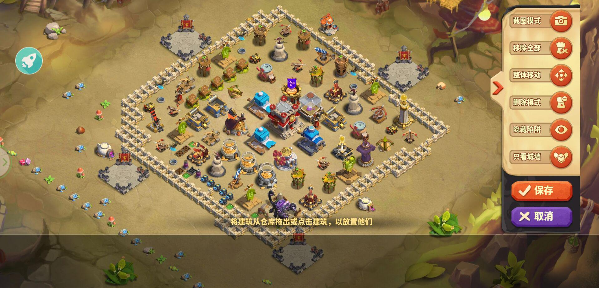 此阵型图由于可摆放的防御建筑面积更多,所以可替换的后期防御建筑也多,所以潜力更大