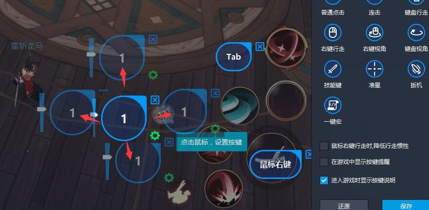 雷电模拟器中,除了最普通的点击按键就使用的技能,其他特殊按键的配置都是要调整的,下面简单介绍特殊按键配置的方法: