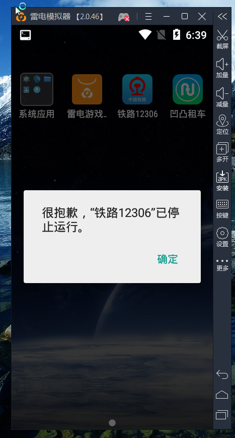 软件停止运行:专门做了对比其他模拟器12306不能运行,但是凹凸能完美运行。