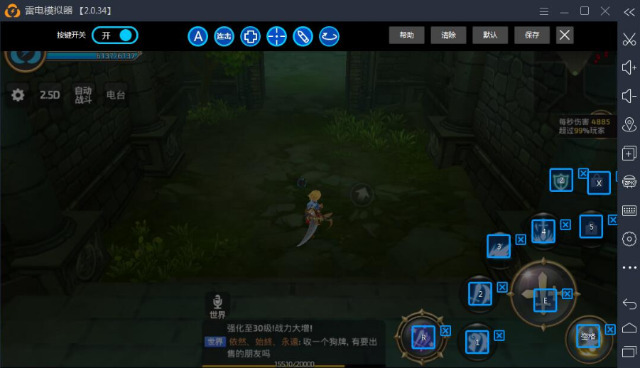 首先,打开雷电模拟器,在雷电应用中心下载龙之谷手游,右侧工具栏有个按键设置按钮,点开。
