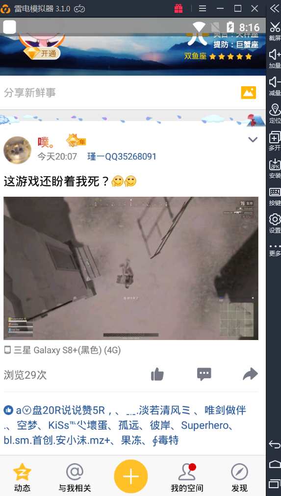 qq正常使用但空间动态闪退,qq空间也是闪退,希望雷电尽快修复:lol