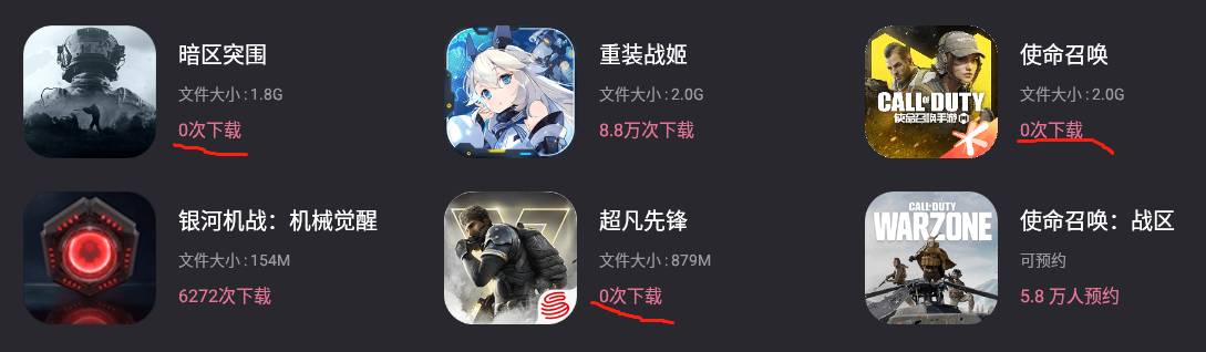 就是问一下为什么【暗区突围】【超凡先锋】【使命召唤】一点下载量都没有?