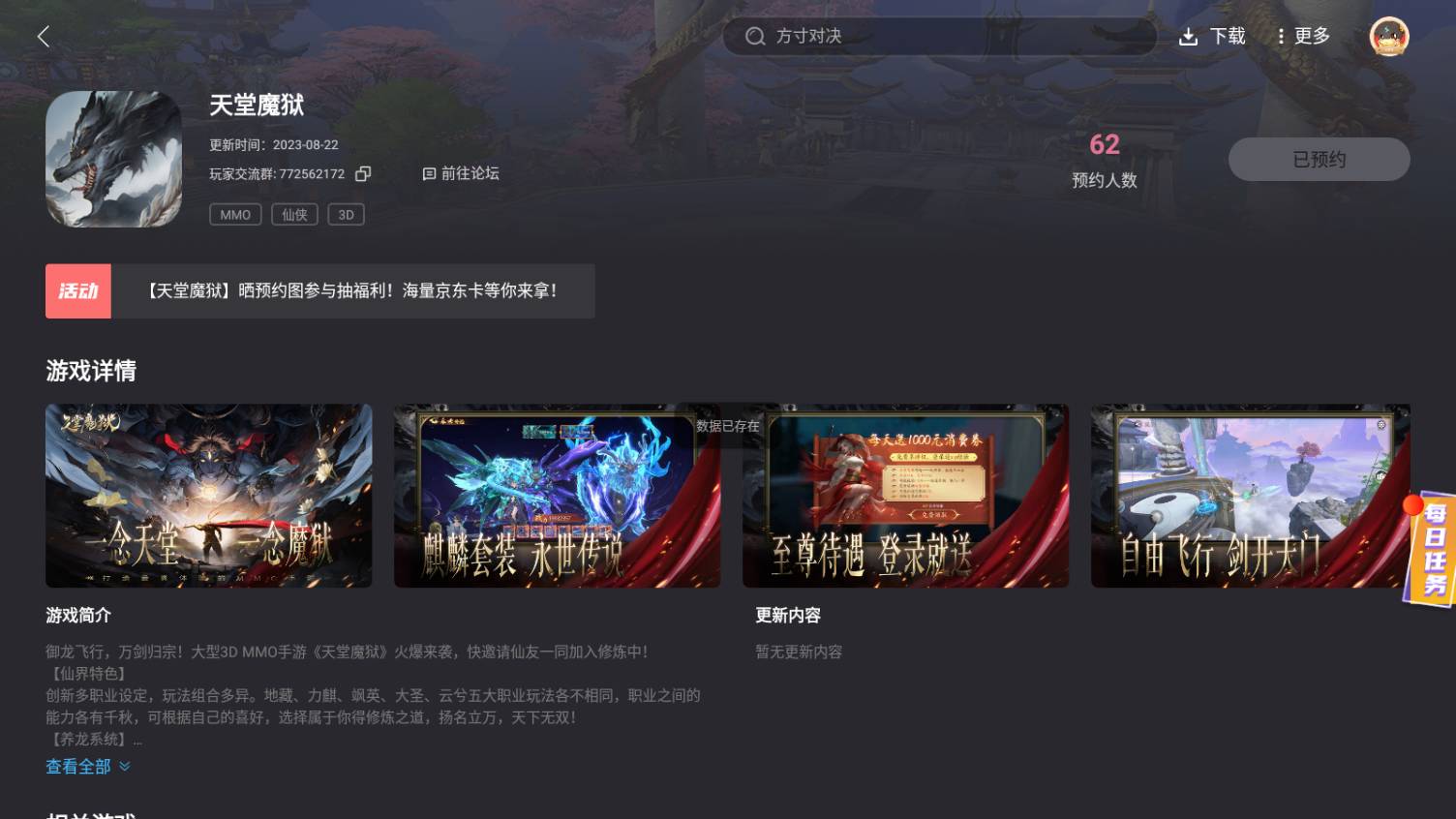 2、在本活动贴晒出【天堂魔狱】的预约截图即等于参与活动。
