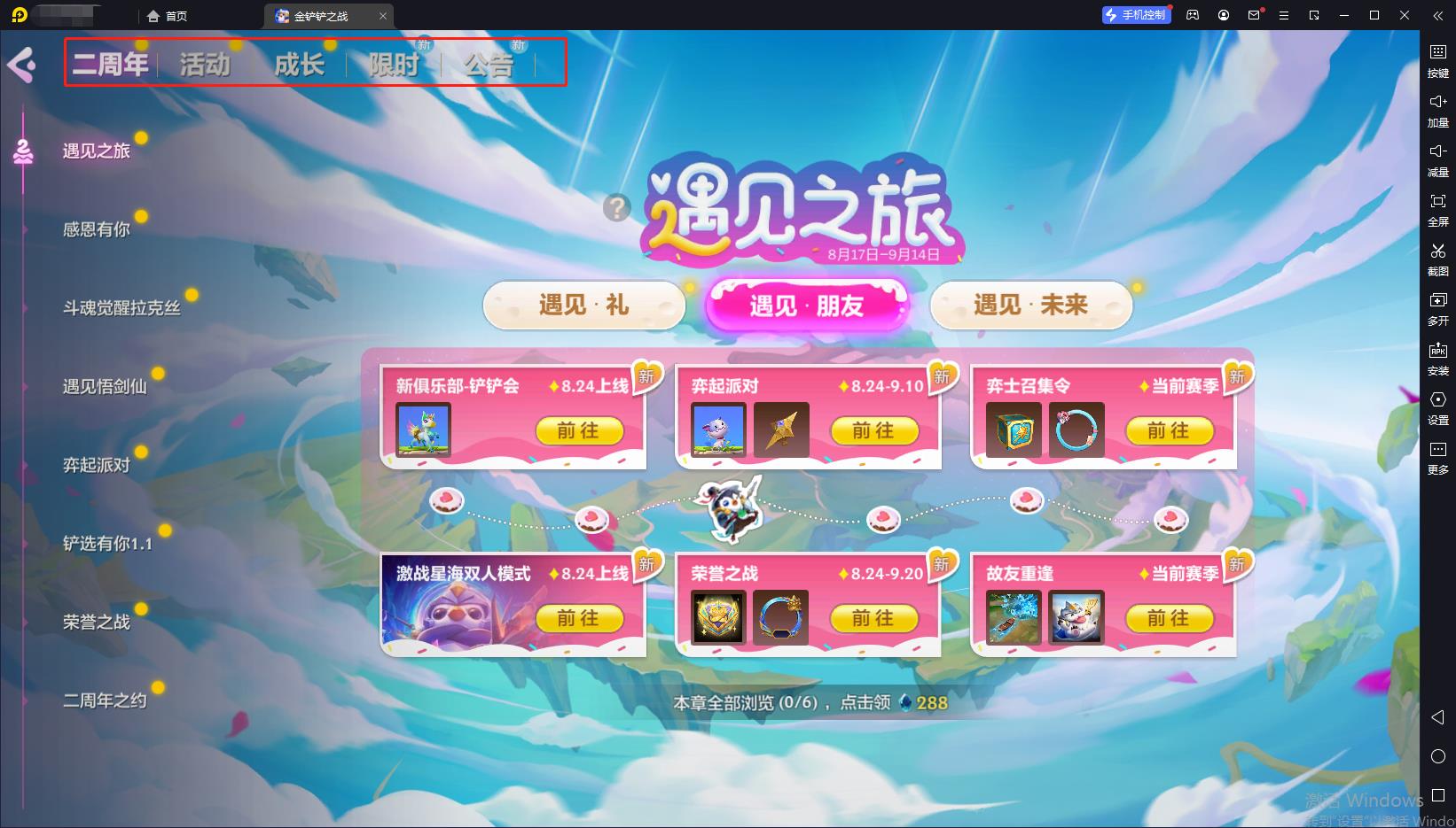 安卓端用户可在模拟器上直接参与二周年活动,点击右上角活动入口即可