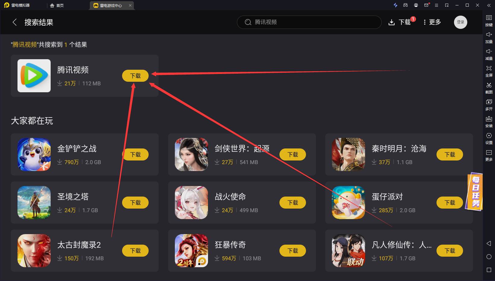 前往【雷电游戏中心】搜索并下载《腾讯视频》即可正常使用