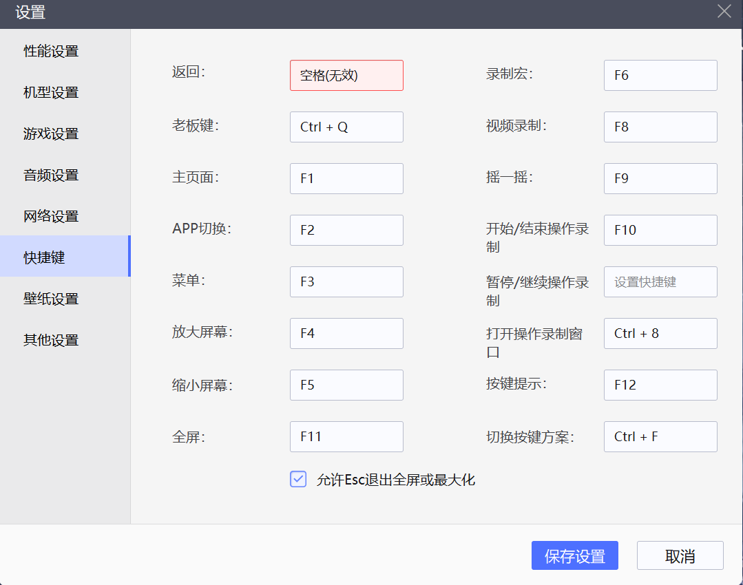 模拟器的快捷键设置种,绝大部分按键无法设置,显示“(无效)”且无法保存设置,以前是可以设置成如空格等键位的。望解决。