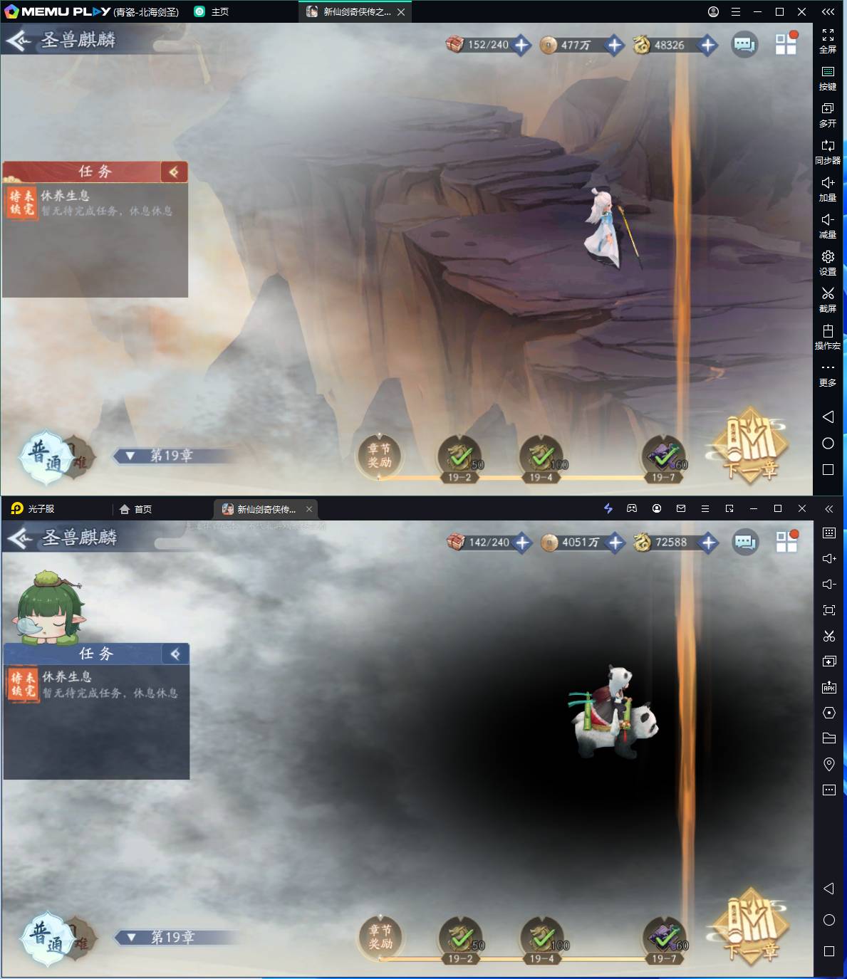 (上面是逍遥模拟器的画面,下面是雷电模拟器的画面)