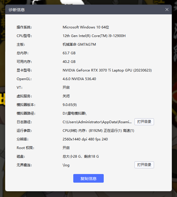 麻烦提供模拟器内的诊断信息(模拟器内右上角三条横杠点开,找到诊断信息截图或者复制发送),把按键布局界面也截图下