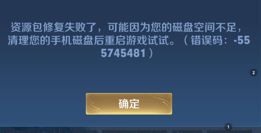 王者荣耀显示资源包修复失败,可能因为您的磁盘空间不足