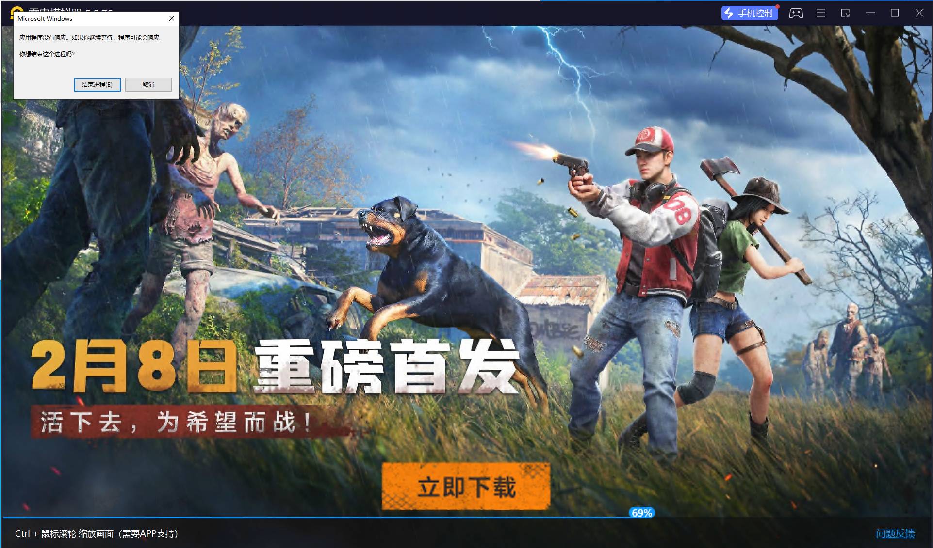 雷电模拟器进度条70%的时候会卡顿无响应