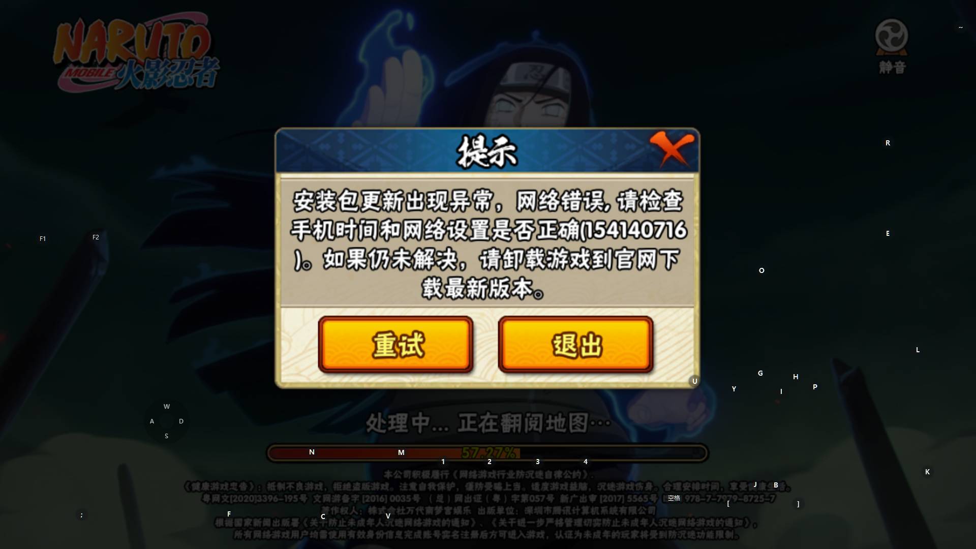 火影忍者一直提示安装包更新异常,重新下载模拟器和游戏都不行