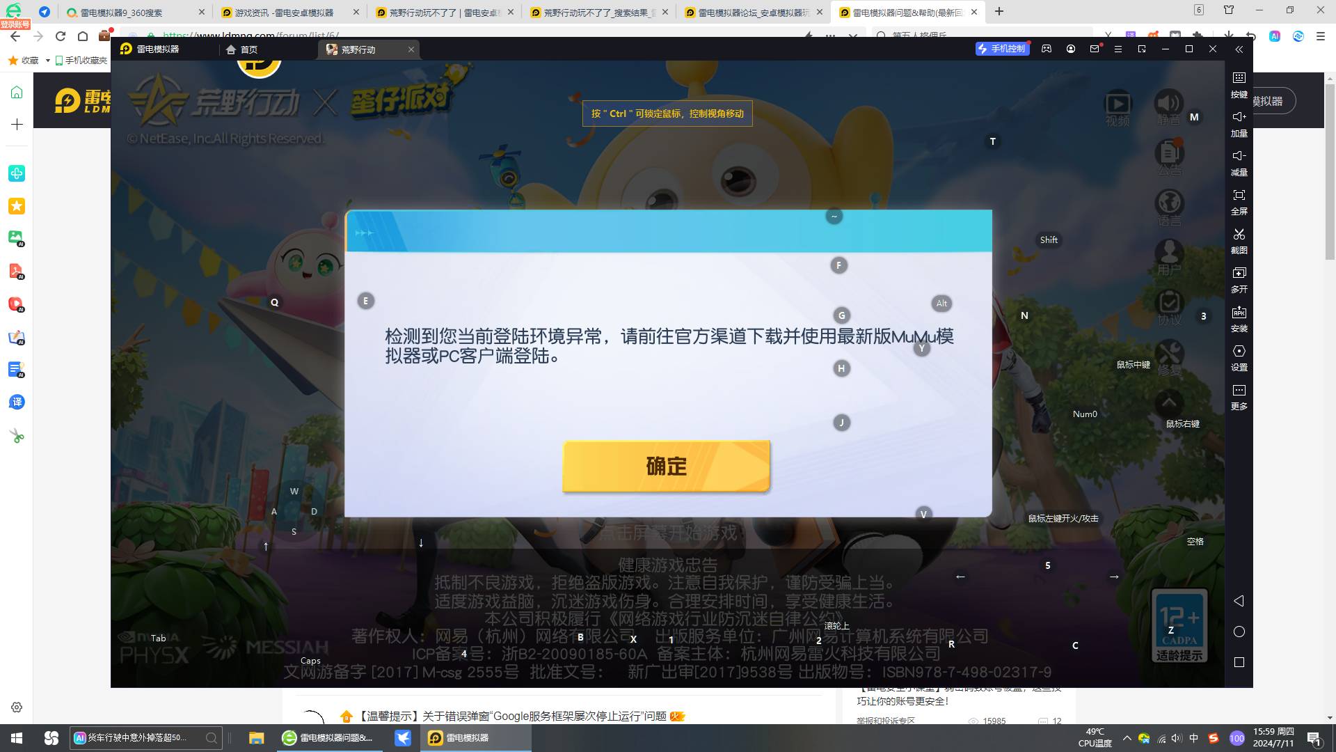 进入游戏登录进去就会返回到登录界面,显示要下载mumu模拟器或下载**pc版,但是这个号玩了很久还充了好多啊