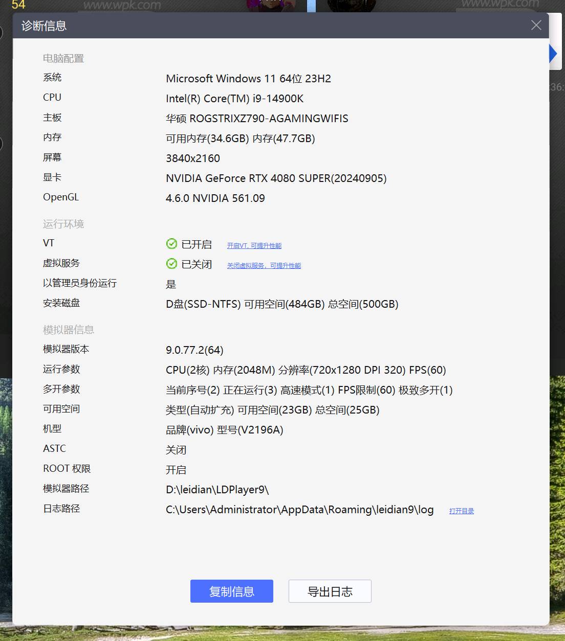 这配置雷电3开巨卡,像是在看幻灯片,每个模拟器设置的4核cpu+4G内存,老机子i9-9900k没事,换14代反而卡死了