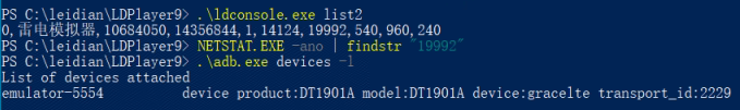 经分析比较,关键不同点在于,正常模拟器创建后,以list2命令结果的第七个参数为进程号,可以查询到端口号,以这个端口号可以连接模拟器。
