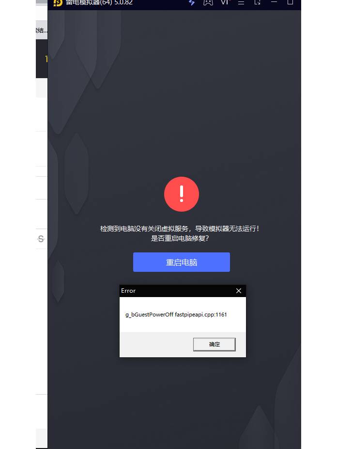 开了hyper-v虚拟机后雷电5就这样了,雷电9到可以叉掉弹窗继续用。雷电5是挂某个游戏需要低安卓环境且不需要反复开关root权限用的