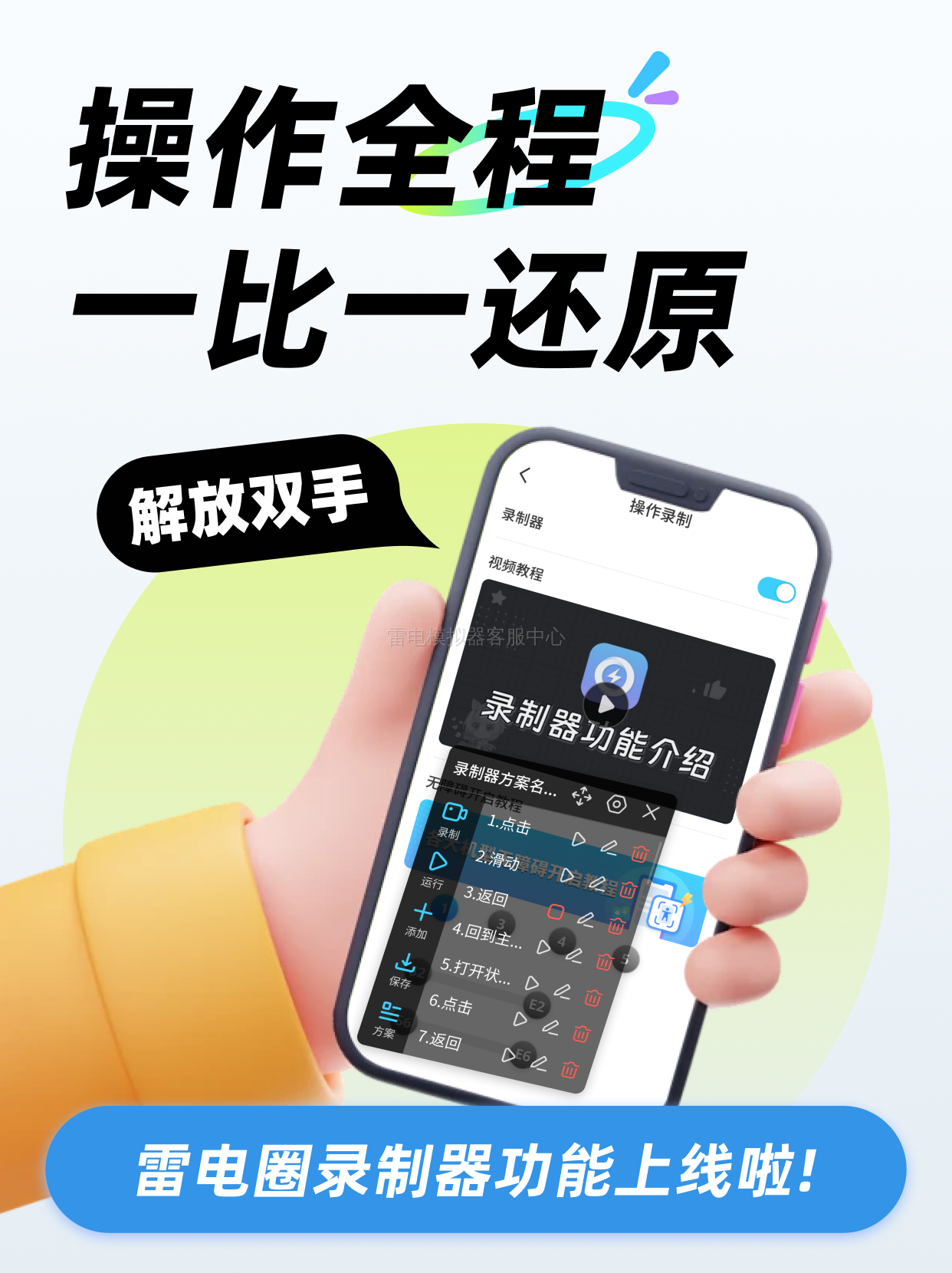 只需录制一次你的操作流程——走位、释放技能、领取奖励……雷电圈将100%复刻你的操作,实现全自动循环运行!无论是挂机刷材料、重复刷副本,还是定时签到领奖励,统统交给雷电圈,彻底解放你的双手!