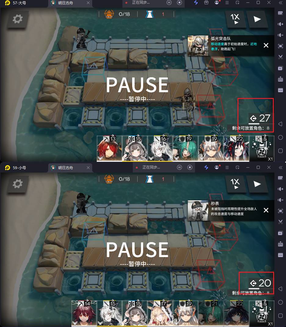 使用操作同步时(两个模拟器),同时点击明日方舟的开始作战按钮,被同步的模拟器会慢个几秒。