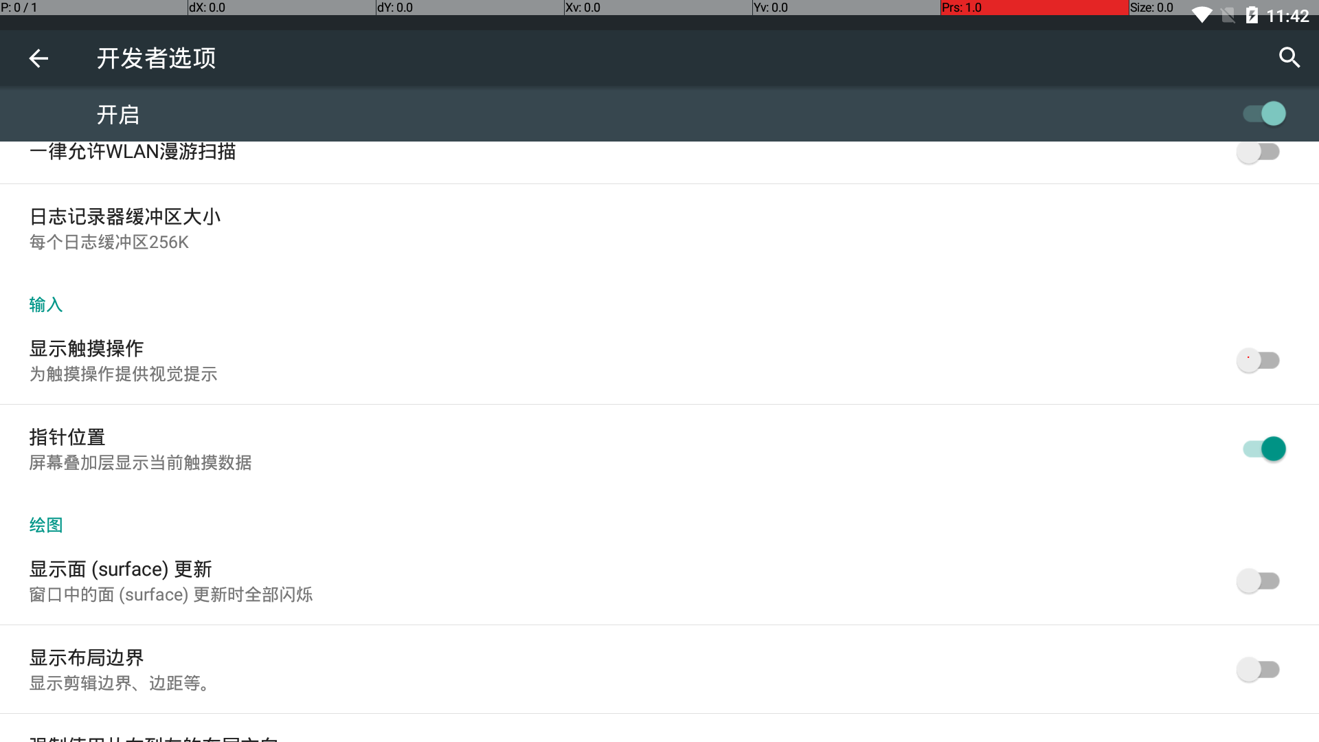 开发者模式里打开指针位置,然后左键按住屏幕任何位置上面就会显示坐标了