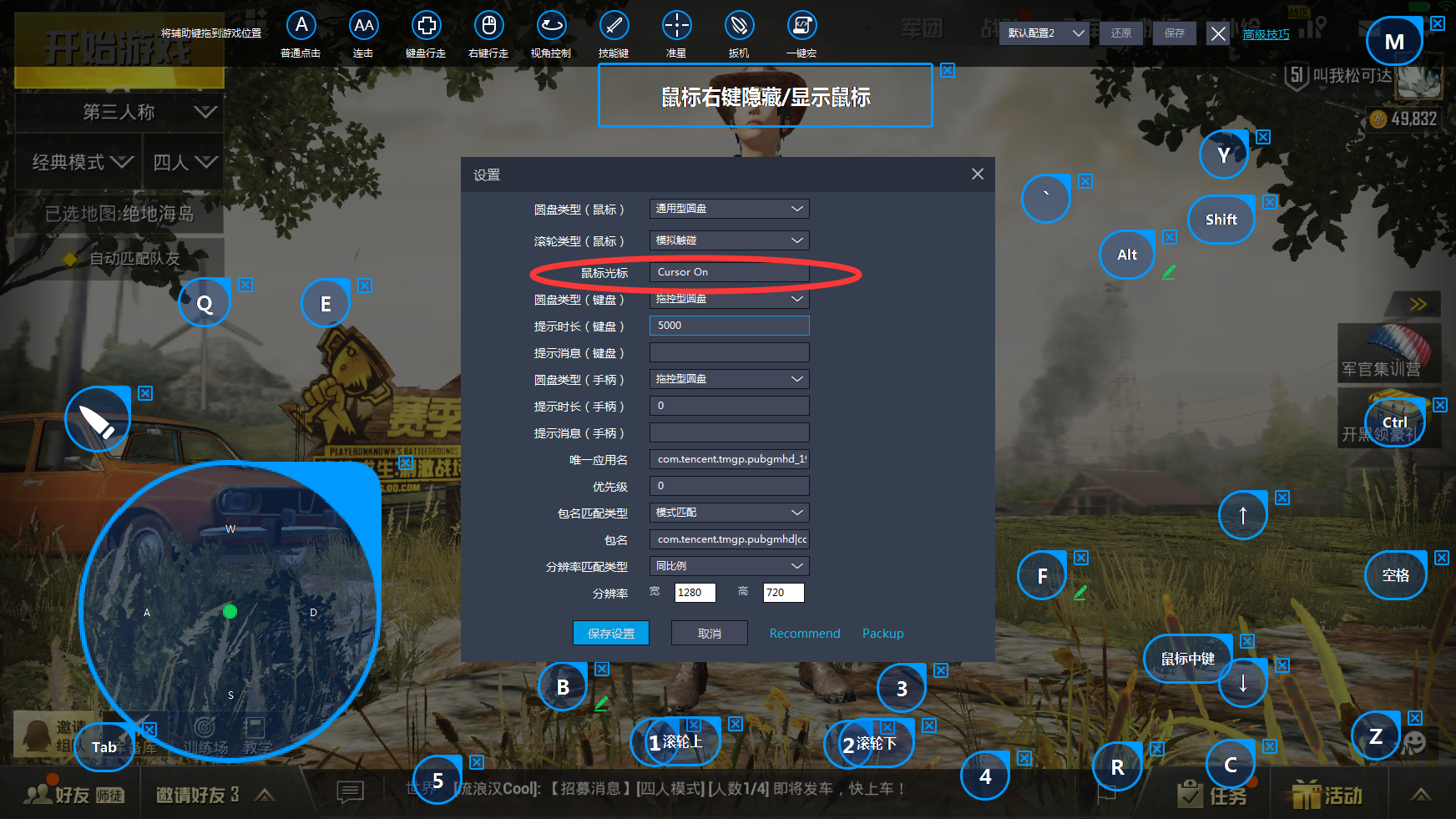 你的意思是进入游戏后鼠标仍是默认的白色鼠标然后难以辨识是吗 你有进入按键的高级设置吗