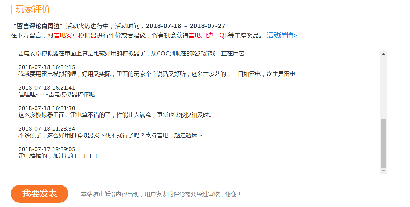 1、 评论内容要求与雷电模拟器相关,要积极向上,禁止使用不文明用语,或评论无关内容;
