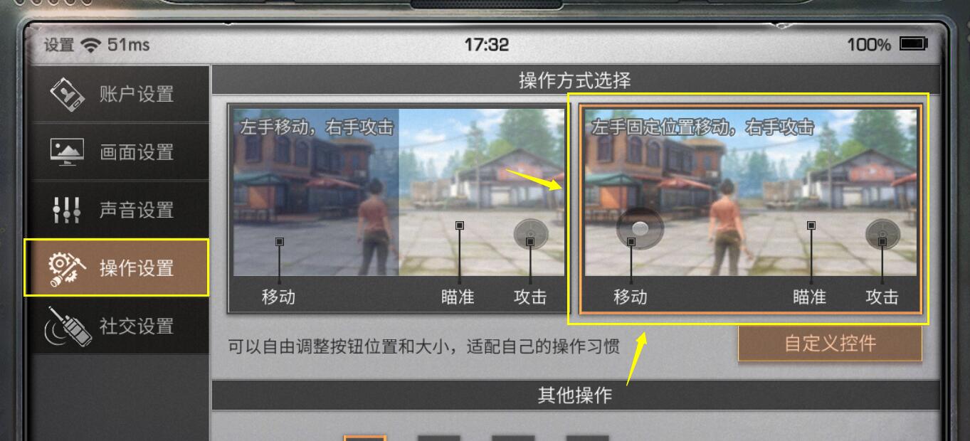 1.打开按键设置,我们默认有两套按键可以选择(建议使用端游模式)