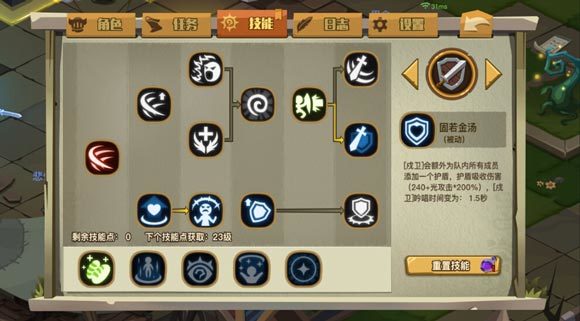 剑盾是续航能力最强的职业,主要是依靠盾反护盾来吸收伤害,加点推荐已被动防御技能为主,具体加点如下: