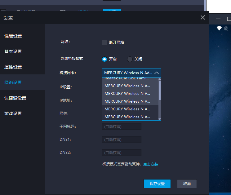 如图,怎么模拟器桥接虚拟网卡有这么多 我只装了2个啊 。跳出这么多选项,而且都是假的 一点模拟器就死机了要修复。怎么解决这个啊 ???清除掉假的网卡选择