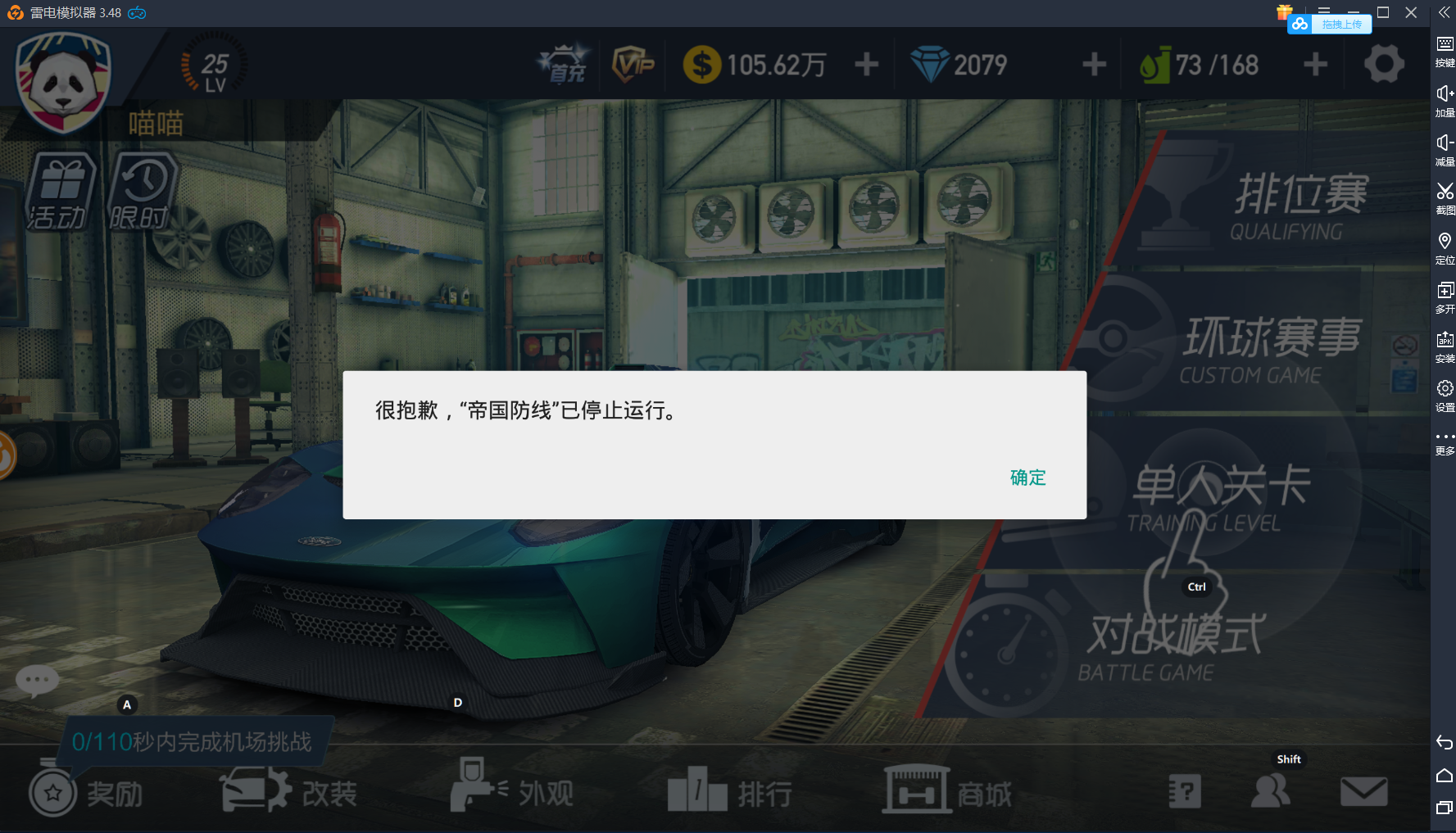 好的我测试下 你卸载游戏,重新在雷电游戏中心下载的试试内存设置4核 4096 配置没问题的