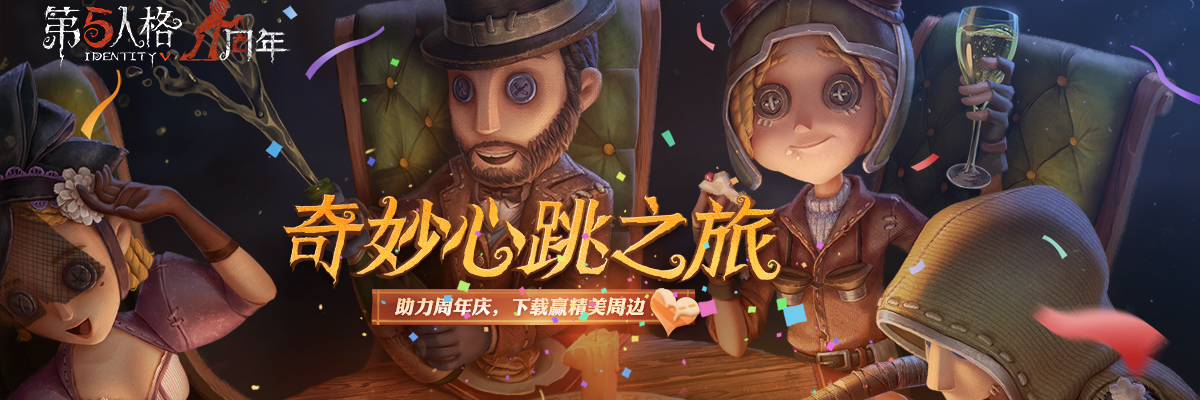 3月28日《第五人格》正式开启周年庆,周边典藏限定周边、周年庆活动盛宴、 免费领取伴手礼等超丰富内容等你来体验~现在注册账号,还有机会免费领取精美的周边哦,快来瞧瞧吧!