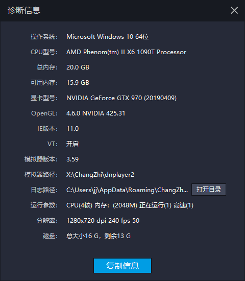 麻烦发下模拟器右上角诊断信息看下