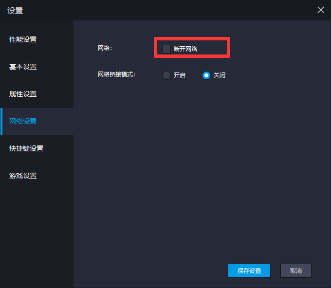 只能打开右边设置,断开网络,同时你也可以用命令做这一步 雷电安卓模拟器命令行整理贴 https://www.ldmnq.com/forum.php?mod=viewthread&tid=30&extra=page%3D1