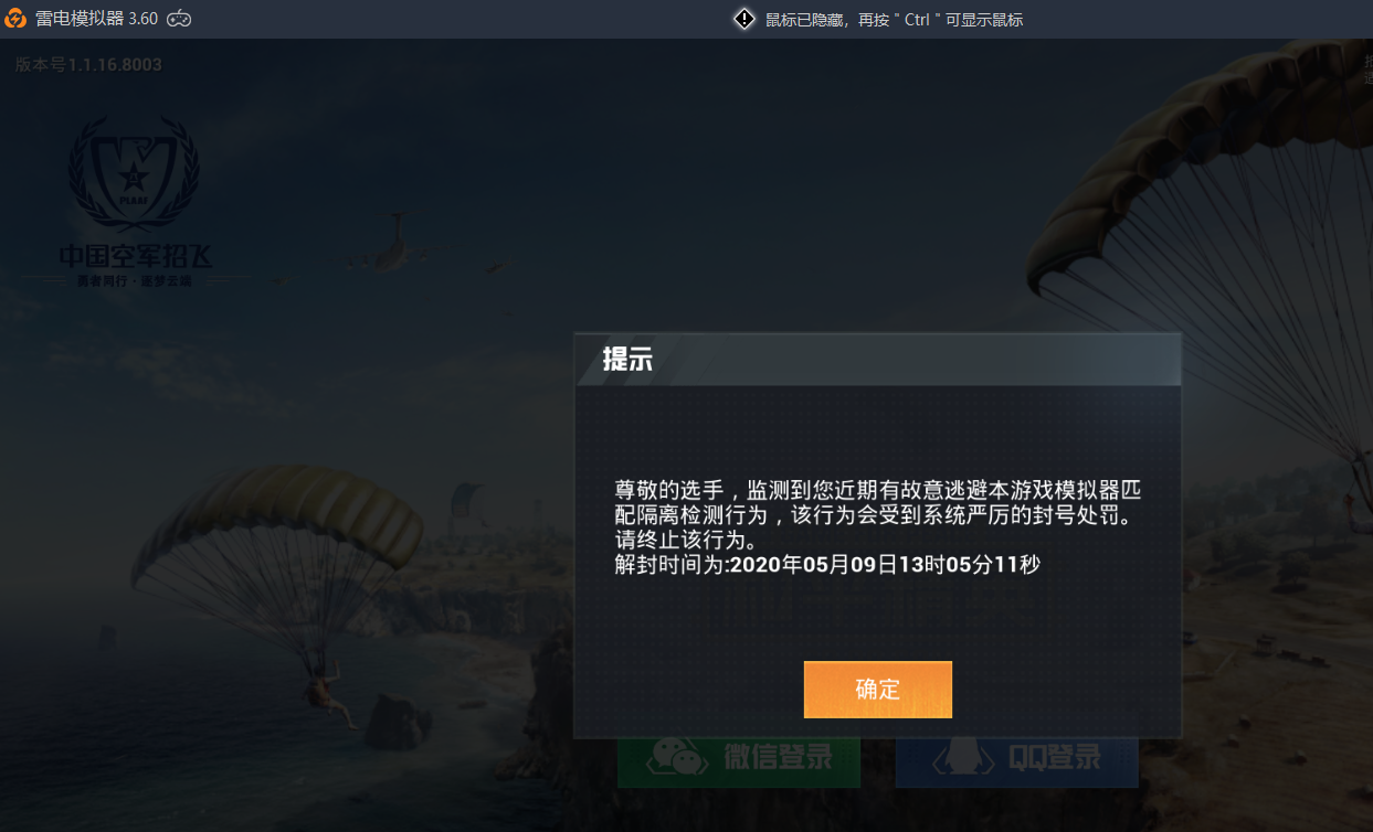 新建的号,第一局刚进游戏,打到还剩两个人,然后就被封了。理由是检测到使用模拟器