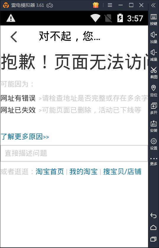 在模拟器里的游戏或应用里下载的 打开淘宝登录淘宝账号的话就提示这样的是怎么回事?需要怎么解决?