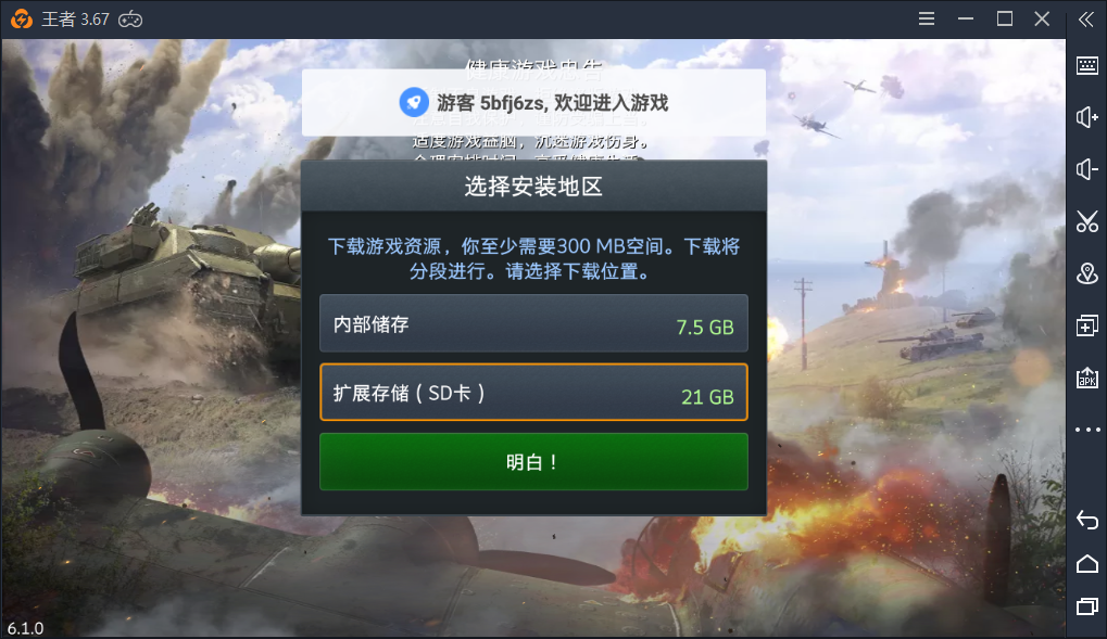 我选择内部内存下载完之后进去,再切掉游戏清除数据是能重新选择安装地区的,你把游戏删了,重新在游戏中心下载试试。