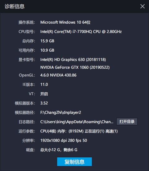 CPU型号:Intel(R) Core(TM) i7-7700HQ CPU @ 2.80GHz
