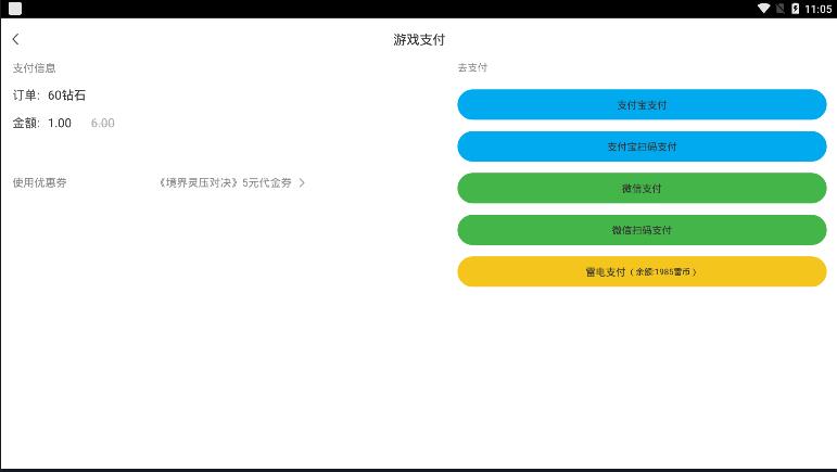 活动期间,登录雷电渠道《境界-灵压对决》,即可获得总价值385元的代金券大礼包一份,内含5个档次的代金券。每个账号每种代金券只能使用一次,代金券只能在雷电渠道《境界-灵压对决》中使用,有效期至9.2。