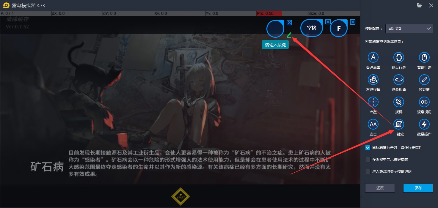 一、电脑打开雷电模拟器并开启游戏,点击模拟器右边工具栏的按键设置