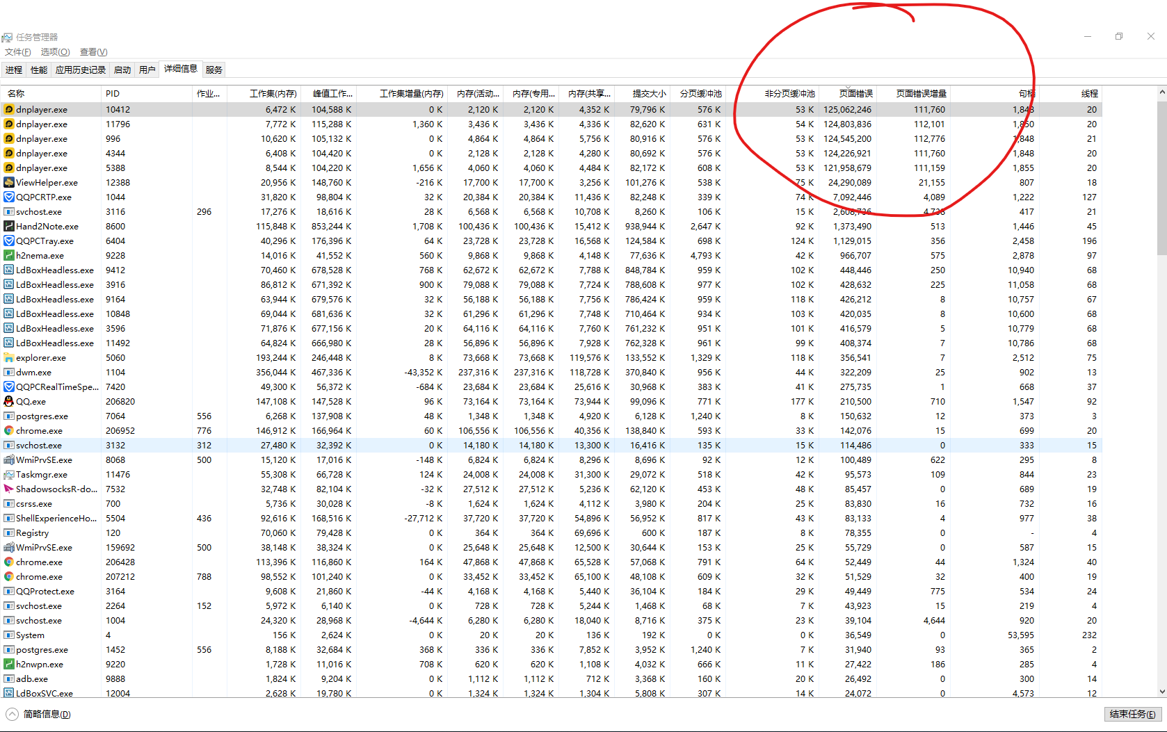 用RAMAP查看情况如图:进程PID到了几十万,大量dnconsole.exe进程残留占用了pagetable。