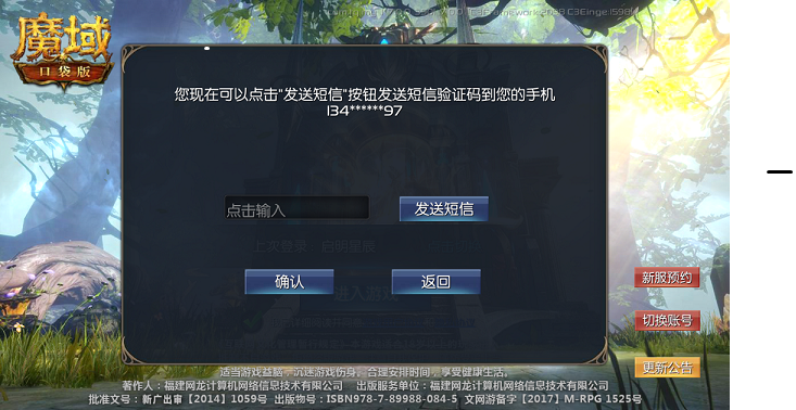 我游戏的登录界面是这个,你那个短信输入是点哪里出现的??