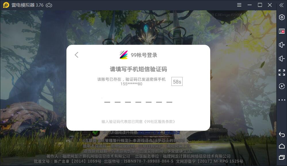 模拟器卡在输入手机验证码界面