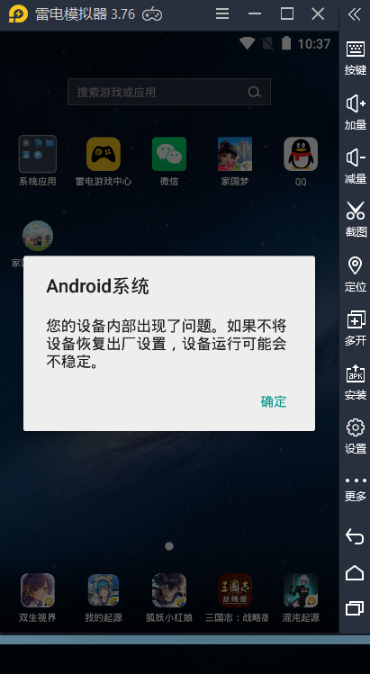 之前都能正常使用,这两天不知道为什么一登录模拟器就这个样子,打开QQ也登陆不了,总是转圈