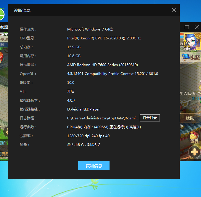 求助大神,模拟器想5开梦幻西游手游版,现在电脑最多开3个4个过一阵子就电脑闪屏一下随后所有窗口就都白屏了,诊断信息在下面,是不是显卡的问题,需要换个好的显卡吗?