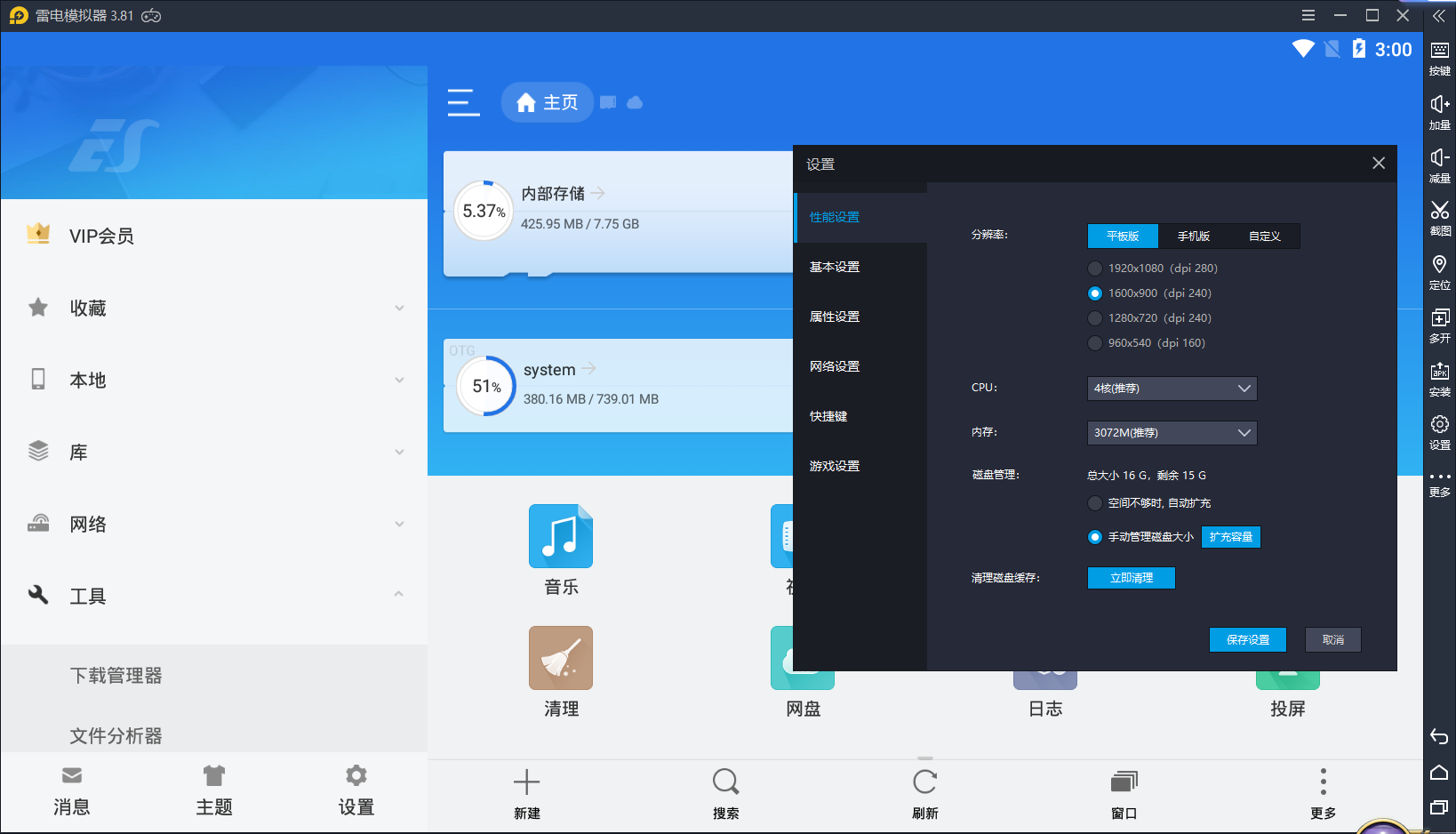 你看下你的百度云里面设置能否设置下载到SD外置存储上 因为模拟器扩展内存后 app是识别为SD扩展内存的