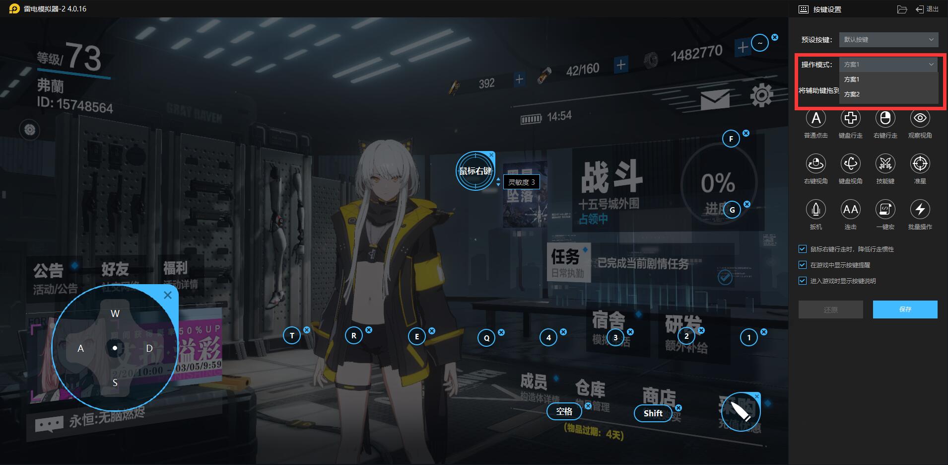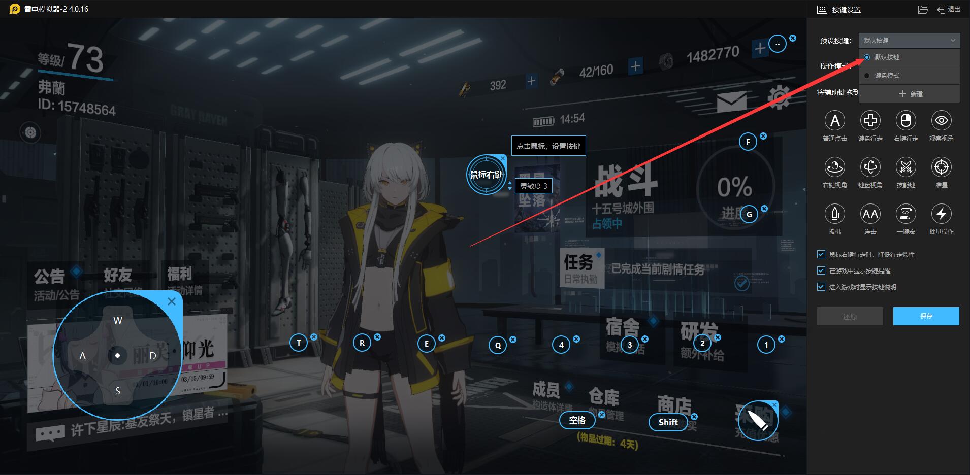 选择默认模式即可右键隐藏鼠标然后点击鼠标左键进行攻击