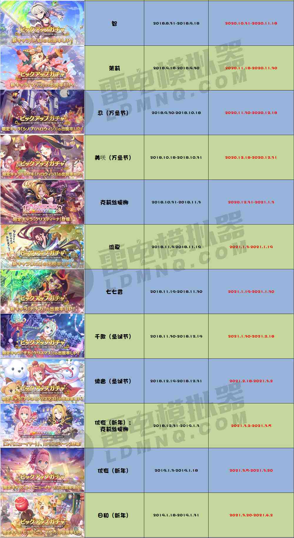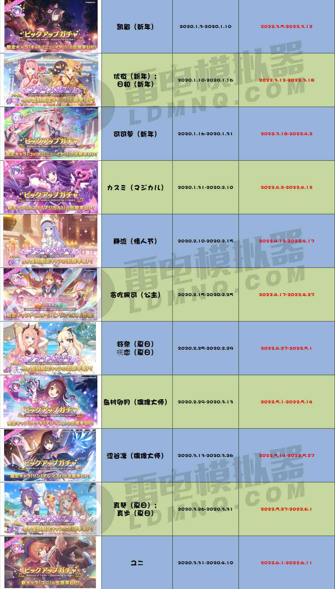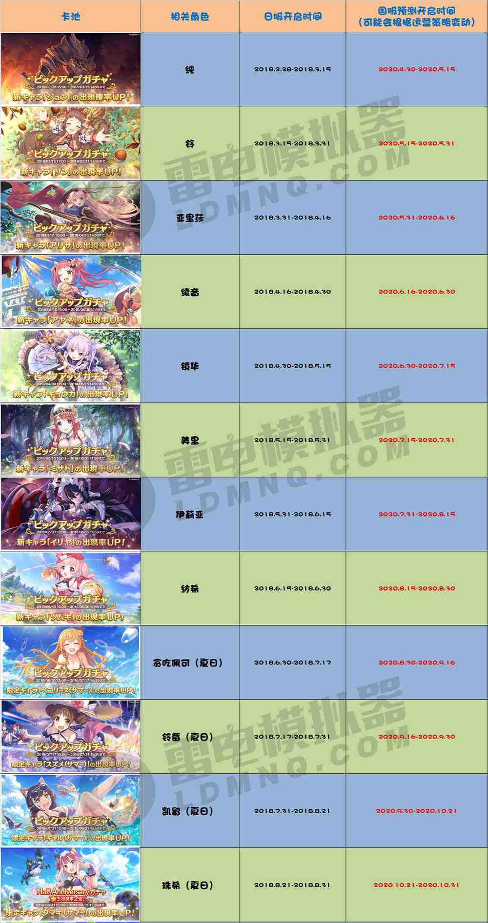 我们给大家做了个卡池开放预测表,以日服为基础,不排除国服会有运营策略变动,所以预测时间仅供参考,但开放的顺序应该是不变的。